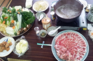 ヴィラやコテージのこたつでお鍋はいかがですか?豚と鶏のどちらかをお選びください。(4名分以上)